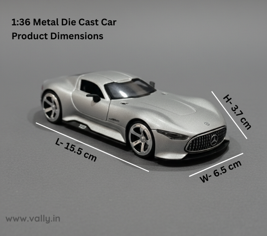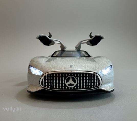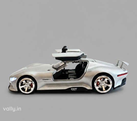 Elegance of a luxury Mercedes Benz GT sports car in a compact 1:36 scale model. Designed with realistic detailing, smooth finishing, and interactive light & sound effects, this die-cast metal pull-back car offers endless entertainment. Simply pull it back and watch it zoom forward with speed!